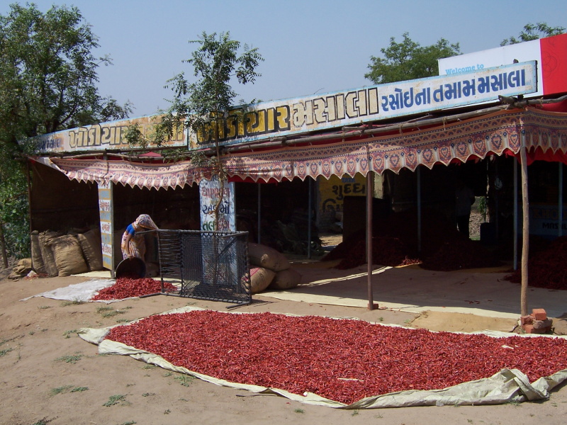 Než jsem si v překvapivě čisté čekárně na autobusovém nádraží naskládal věci na kolo a u jednoho stánku pojedl, přehouplo se poledne a slunce pálilo jako zběsilé. Teploměr mi ukazoval ve stínu teplotu 45 °C, ale i tak jsem se velmi těšil na to, až konečně vyjedu. Ahmedabad je obrovské město, rozlezlé po vyprahlé rovině několik desítek kilometrů daleko. Dalo mi dost práce se z centra vymotat, neboť značení nebylo buď žádné nebo napsané obrázkovým písmem, které jsem nedokázal přeluštit. Po pár zeptání a jedné zajížďky se mi to nakonec podařilo. Bohužel jsem jel stále po čtyřproudé, hodně frekventované silnici, bez jediného stínu, a já se po 40 km jízdy cítil totálně přehřátý. Navíc nebylo kolem moc co ke koukání a já začal přemýšlet, že se k večeru opět poposunu autobusem, abych se dostal mimo tuto hlavní dopravní tepnu, odkud zatím nebylo pro mě úniku.