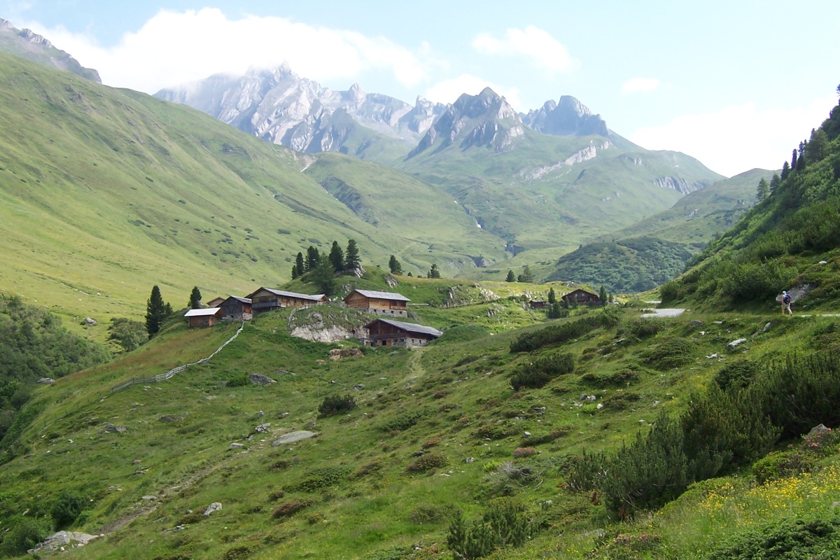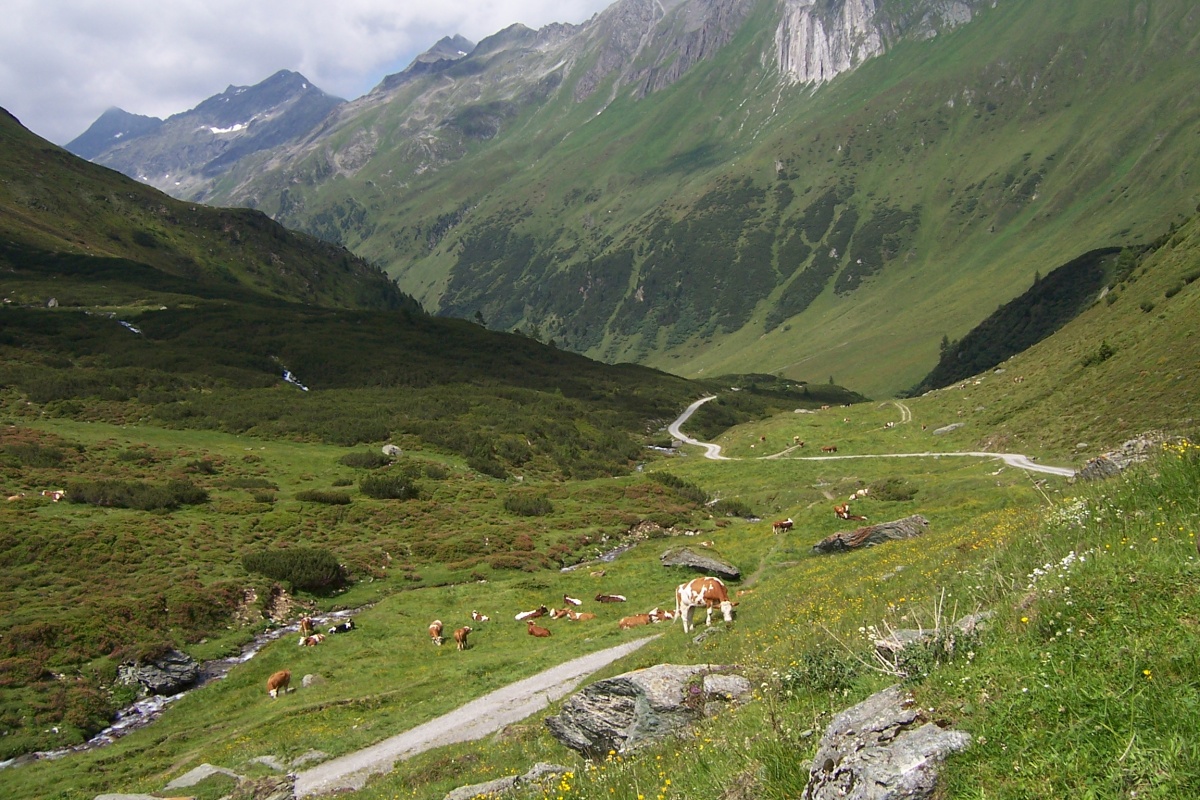 Sjezd po rakouské straně je pozvolný a neustále se měnící příroda nám učarovala. Neustále jsme stáli a fotili. Za zmínku stojí mimo jiné i pastevecká vesnice, jejíž 15 kamenných baráčků i s kostelíkem jakoby přišlo z předminulého století. Dlouho jsme stáli a uvažovali, jak zde musí být místní život složitý. Také jsme ochutnali čerstvě nadojené „pravé alpské“ mléko. Dá se levně koupit kdekoliv, jen se člověk nesmí stydět zeptat.