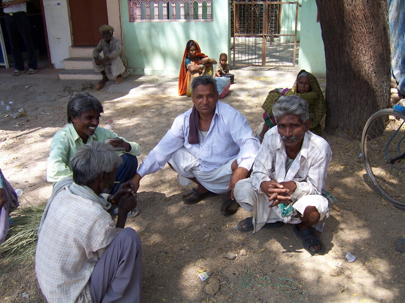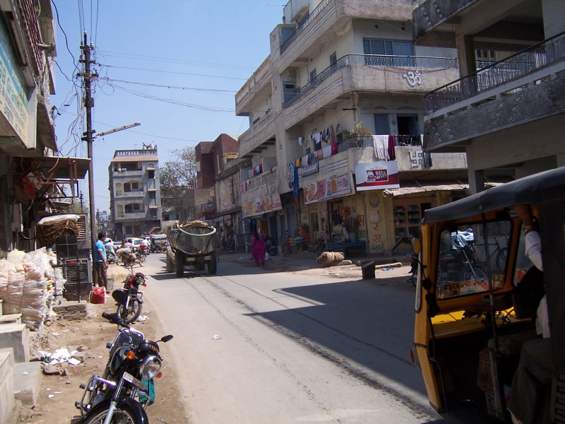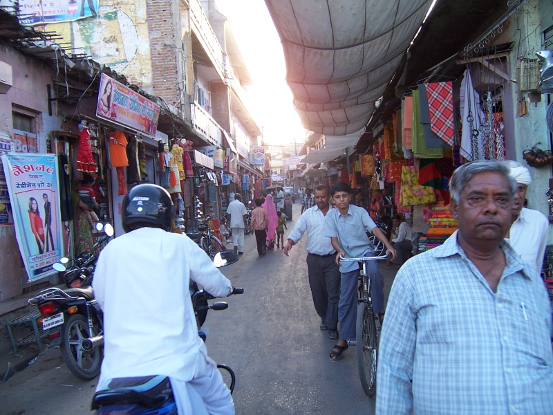 Tím, že jsem jel neustále po rovině a nefoukal žádný vítr, těsně před polednem jsem měl „nakroucených“ 90 km. Právě jsem přijel do městečka Raniwara, kde jsem dnes poprvé zastavil na trochu jídla. Ihned se na mě nalepilo několik desítek lidí – jako vosy na bonbón. Majitel krámku s občerstvením je ode mě odháněl plácačkou na mouchy, ale téměř marné bylo jeho počínání. Přežil jsem to jen s největším přemáháním, na druhé straně jsem si trochu odpočinul a nacpal se sladkostmi, které jsou po celé Indii obdobné a docela chutné. Jen jsou oproti ostatnímu jídlu výrazně dražší.
