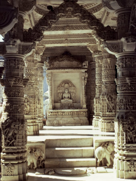 Obrázky z „Jain Templu“ jsem viděl sice u Zdeňka v knize na obrázcích, skutečnost však předčila moje veškerá očekávání. Tento chrám patří do úchvatné skupiny pěti buddhistických staveb na vrcholu vzdáleném 3 km od městečka. Chrámy vynikají neuvěřitelně jemnou kamennou dekorací a propracovaností. Bílý mramor, ze kterého jsou postaveny, je opracován tak jemně, že člověka nechtě napadá myšlenka, že toto snad ani nemůže být dílo lidské ruky. Složitě tesaná výzdoba chrámů působí naprosto snově a je neuvěřitelné, že chrámy vznikly již kolem roku 1000 n. l. Chodil jsem po neskutečně nádherných sálech a oči mi málem lezly z důlků. Veškerá výzdoba je vytesaná do nejmenších detailů a nic není opakované dvakrát. I když např. desítky sloupů v jednom ze sálů vypadají na první pohled stejně, při bližším zkoumání se najde mnoho rozdílů. Postavy, zvířata, květy i ornamenty jsou na každém sloupu jiné. To stejné platí i o „armádě“ asi půlmetrových slonů nebo desítkách Buddhů podél stěn – každý je odlišný a propracovaný do nejmenších detailů. Když se člověk koukne nad sebe na stropy, naprosto nevěřícně hledí na to, jak dokonalá výzdoba i zde může být. Naprosto mě mrazilo v zádech z pomyšlení, že toto vše mohu vidět na vlastní oči. Dodnes nechápu, proč tento chrámový komplex není na seznamu největších divů světa. Pro mě bude rozhodně patřit k těm z nejúžasnějších míst, které jsem kdy ve svém životě navštívil a vzdávám hold tehdejším mistrům, kteří toto jedinečné dílo vytvořili. Škoda jen, že se musí dole před vstupem odevzdat veškerá technika a že se zde nedá fotit. Za článkem v galerii jsou alespoň pro přiblížení tři fotografie, které jsem našel na internetu. Snad vám tuto neopakovatelnou atmosféru dokážou alespoň částečně zachytit.