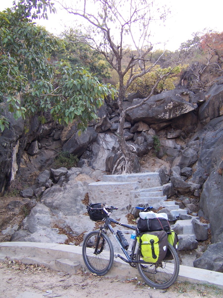 Silnice vede celých 25 km do kopce, a i když stoupání není zas až tak strmé, vražedné slunce a nedostatek stínu mi z toho udělaly docela obtížný výšlap. Původně jsem si říkal, že bych si mohl nechat všechny věci dole a vyjet jen tak nalehko, nakonec jsem se rozhodl vláčet vše s sebou nahoru. Kamarád Zdeněk, který tady byl před pár lety, mi totiž tvrdil, že se stejně budu muset vracet stejnou cestou zpátky, mapa mi však říkala něco jiného a já měl proto v plánu zeptat se místních, kudy se dá sjet dolů na opačné straně. Předzásobil jsem se vodou a velmi klidným tempem jsem vyrazil nahoru. Teplota vystoupala na slunci těsně k 50 °C a ze mě lilo jako kdybych byl neustále pod sprchou. Tři litry jsem vypil natorata a kdyby nebyla v polovině kopce restaurace s možností dokoupení vody, asi by byl zbytek stoupání pro mě velmi obtížný. U restaurace bylo celé stádo opic, které se lidí vůbec nebály a které místní i indičtí turisté krmili banány. Za tři a půl hodiny jsem byl sice nahoře, ale pak jsem se zbytečně zdržel tím, že jsem se minimálně desetkrát musel ptát na cestu k „Jain Temple“. Nikoho totiž ještě nenapadlo dát na silnici dvojjazyčné cedule. Nakonec mi poradil úplně malý kluk na kole, jehož angličtina byla tak skvělá, jakoby byl rodilým mluvčím.