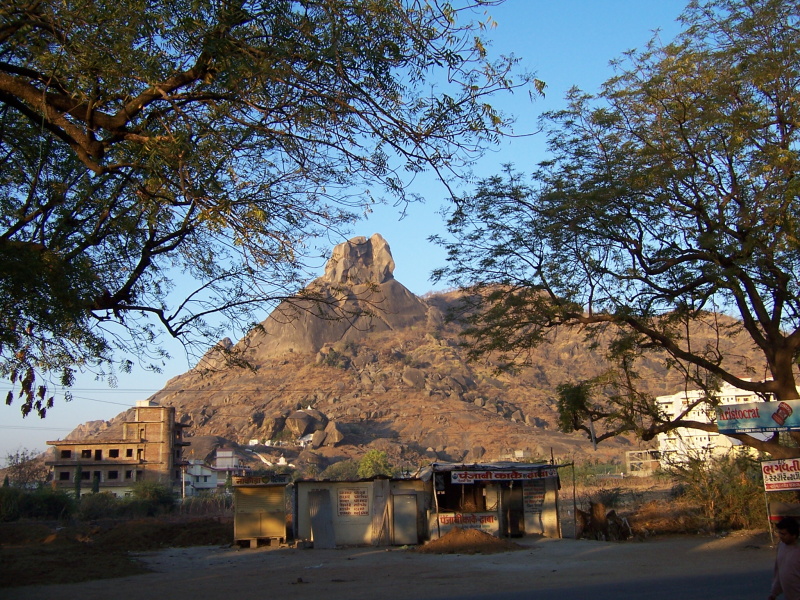 Dolů jsem přijel chvíli před setměním a hned ve druhém hotelu jsem usmlouval čistý a prostorný pokoj z 300 na 150 rupií. Nebylo to nic těžkého, neboť i zde byla podél silnice celá řada hotelů, hotýlků a ubytoven, kde bych za tuto cenu určitě něco našel. Majitel si část usmlouvaných peněz „vzal“ vzápětí zpět. Večeře za 50 rupií byla pidiporcí asi tak pro tříleté dítě, takže jsem se musel dojíst o padesát metrů dál, kde jsem dostal za 35 rupií takovou hromadu rýže a zeleniny, že jsem to ani nebyl schopen celé spořádat. Přímo přes silnici bylo před hotýlkem uskupení obrovských a zajímavě tvarovaných balvanů, které ve svitu zapadajícího slunce a potom i v měsíčním světle vypadaly více než zajímavě.