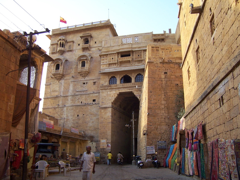 A co teprve kamenné uličky! Vše je sice přizpůsobeno turistickému ruchu – snad všude je obchod se suvenýry – ale úžasnou atmosféru to nezmění. Poprvé a naposledy mně ani nevadily mraky turistů, kteří město Jaisalmer vyhledávají jako jednu z největších atrakcí Radžastanu. Motorovým vozidlům je vjezd až na výjimky do pevnosti zakázán, nehledě na to, že většina uliček je natolik úzká, že by jimi normální auto sotva projelo. Domy jsou neuvěřitelně krásně vyzdobeny a oproti ostatním indickým domům mají často nádherně zdobené vikýře a balkóny. Vše je postaveno ze žlutého pískovcového kamene, ne náhodou se proto Jaisalmeru přezdívá „Zlaté město“. Jediné, co se dá pevnosti lehce vytknout, je stejně jako v ostatních indických městech všudypřítomný pach moče. Jestli je to tady jen od volně se popocházejících se krav a psů nebo i od lidí, nedokážu posoudit, v každém případě jsem byl i tak ze všeho nadšený, že jsem samým vzrušením jen velmi těžko usínal.