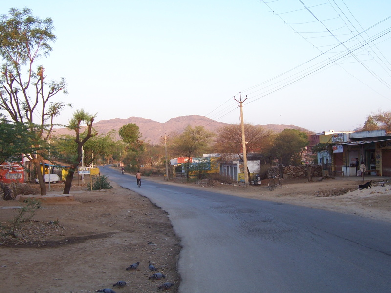 Silnice byla na mé mapě zakreslena z Udaipuru až do cílového města Abu Road téměř přímo, ve skutečnosti to bylo úplně jinak. Vesnice Moro, odkud měla vést vedlejší silnice přímo do Abu Road neexistovala, cesta už vůbec. Nechápu, podle čeho se mapa kreslila. Ač nerad, musel jsem si oklikou zajet až do města Pindwara, odkud to bylo už opět přímo. Celou dobu jsem jel dnes v kopcích, takže mi to vlastně ani nevadilo, protože se bylo na co koukat. Kopcovité a zarostlé panorama je totiž mnohem pestřejší než ubíjející vyprahlá rovina. Navíc mi opět vál vítr přímo do zad, takže i přes mnohá stoupání jsem byl v Pindwaře (108 km) už ve 13 hod. Tady jsem se jen najedl a napil, nic jsem neprojížděl, ani si neprohlížel, neboť toto městečko mi připadalo totálně nezajímavé a zašlé, stejně jako desítky a stovky jiných podobných indických měst.