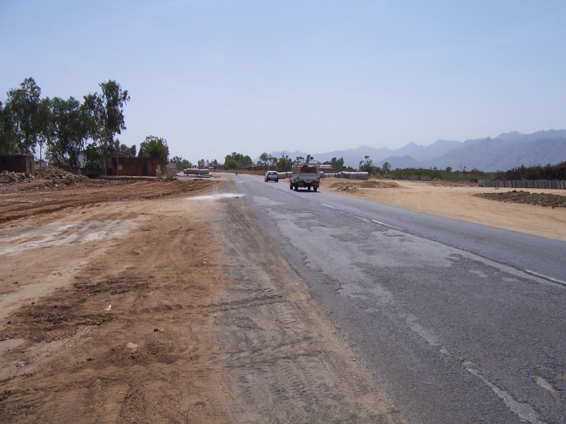V těchto místech se opět stavěla nová čtyřproudová silnice, kde se nové úseky střídaly se starou silnicí nebo prašnými objížďkami. Docela jsem se podivoval nad tak velkolepým projektem, neboť zde nebyl vůbec žádný provoz a silnici jsem měl jen pro sebe. Pak mě napadlo, že se zde myslí na dalekou budoucnost, kdy každý Ind bude mít své auto. Budoucnost je to však hodně daleká, a to i z důvodu postupu prací na silnici. Pracovalo se zde jen na několika málo úsecích, a to ještě vše ručně. Pokud jsem se někdy zlobil na naše stavitele či opraváře silnic, tady to byla téměř parodie na práci. Když už někde byla parta dělníků, tak většina z nich seděla v podřepu a flegmaticky koukala na jednoho nebo dva z nich, kteří se lopotili s přenášením velkých balvanů. Největší mechanizací tady byla lopata.